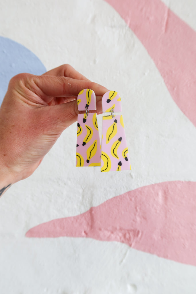 Introducing our new Banana Collection created from my original Banana artwork that won the Gorman scrubs competition, of light weight, hypoallergenic acrylic statement dangles!