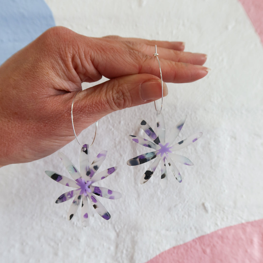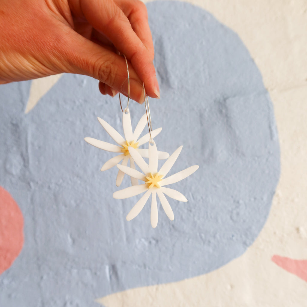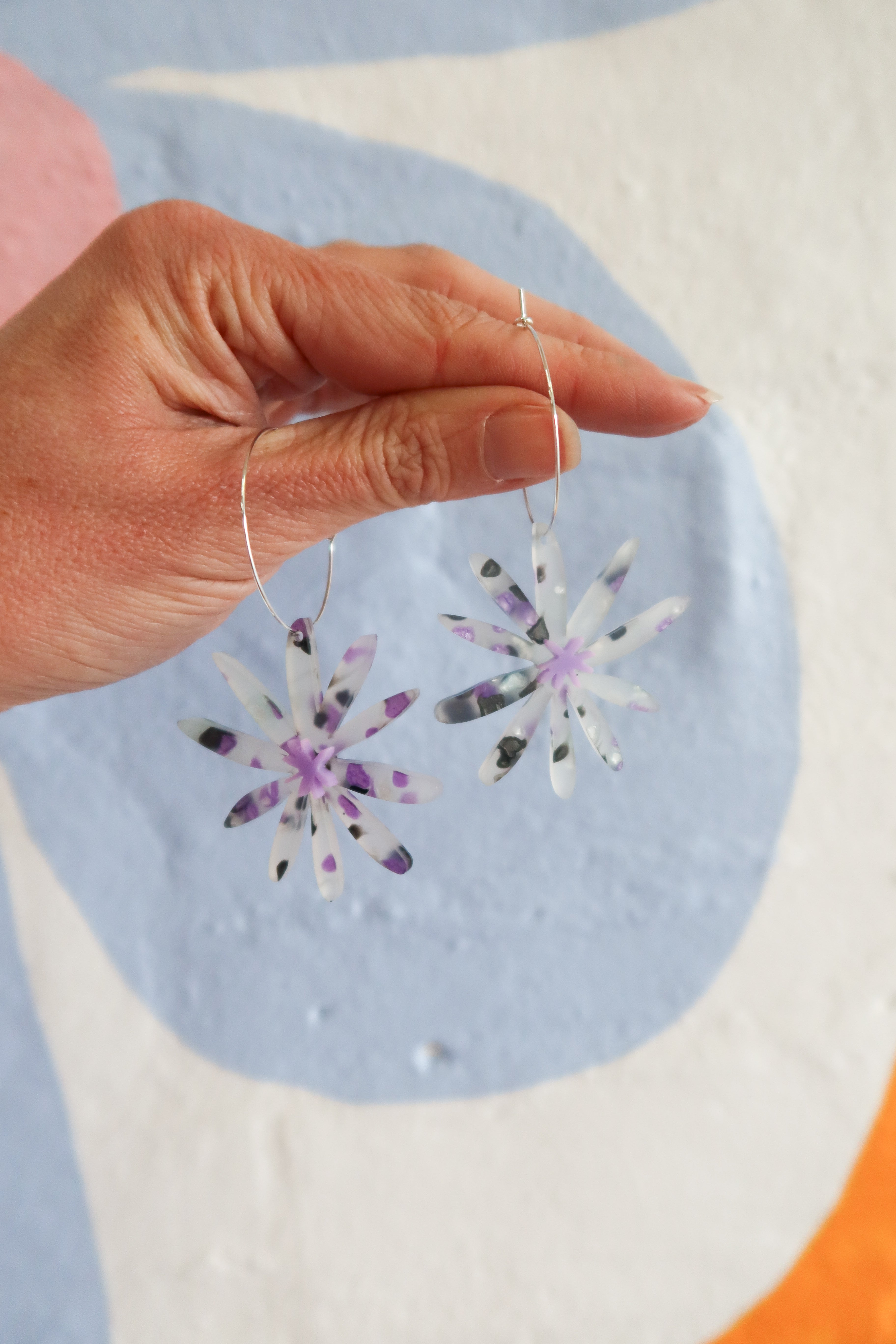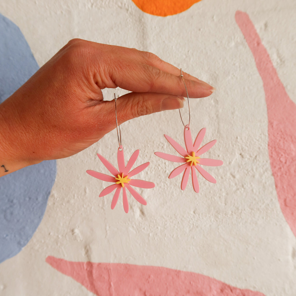 These daisy hoop dangles are a serious statement, a bold accessory to pair with the perfect dress