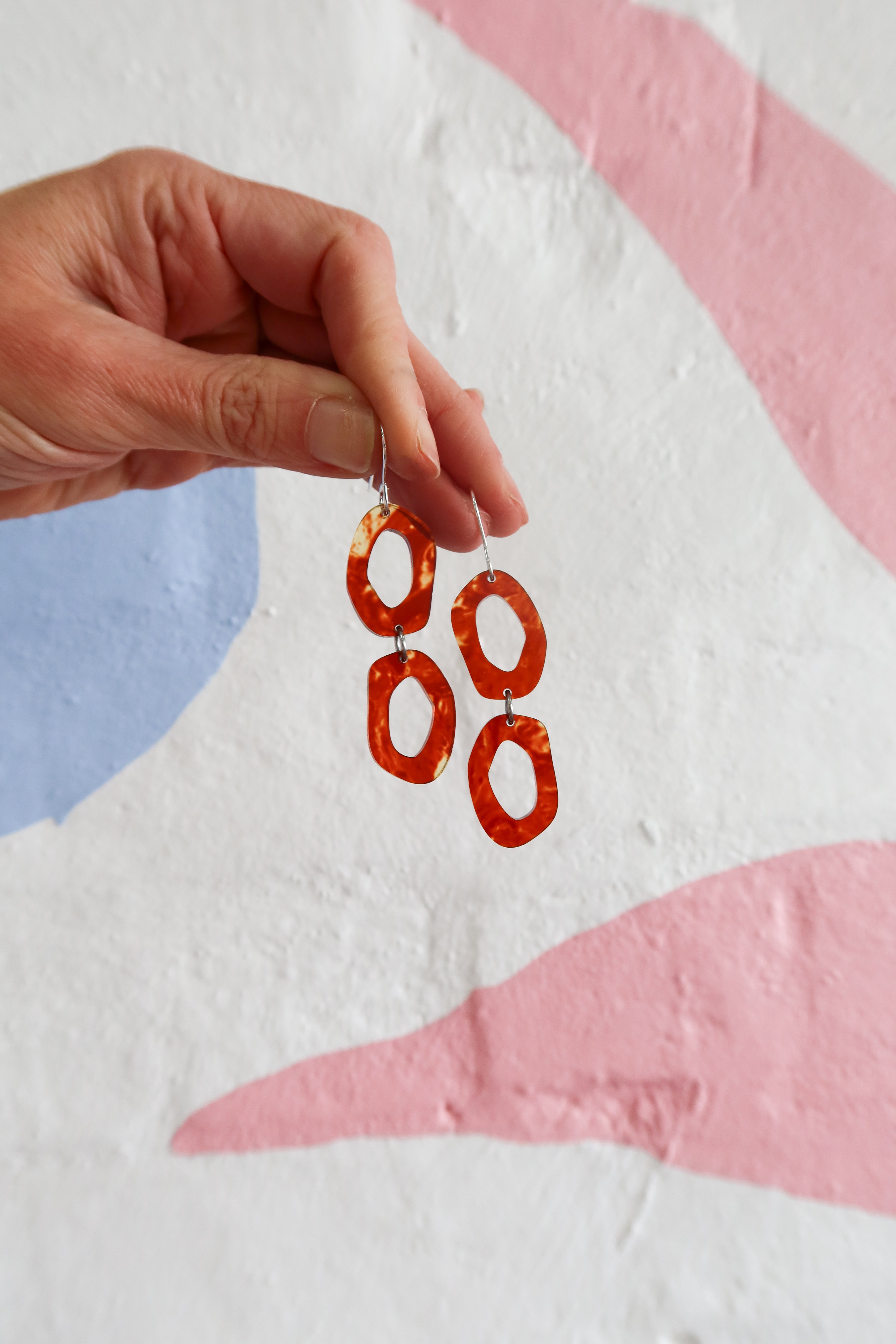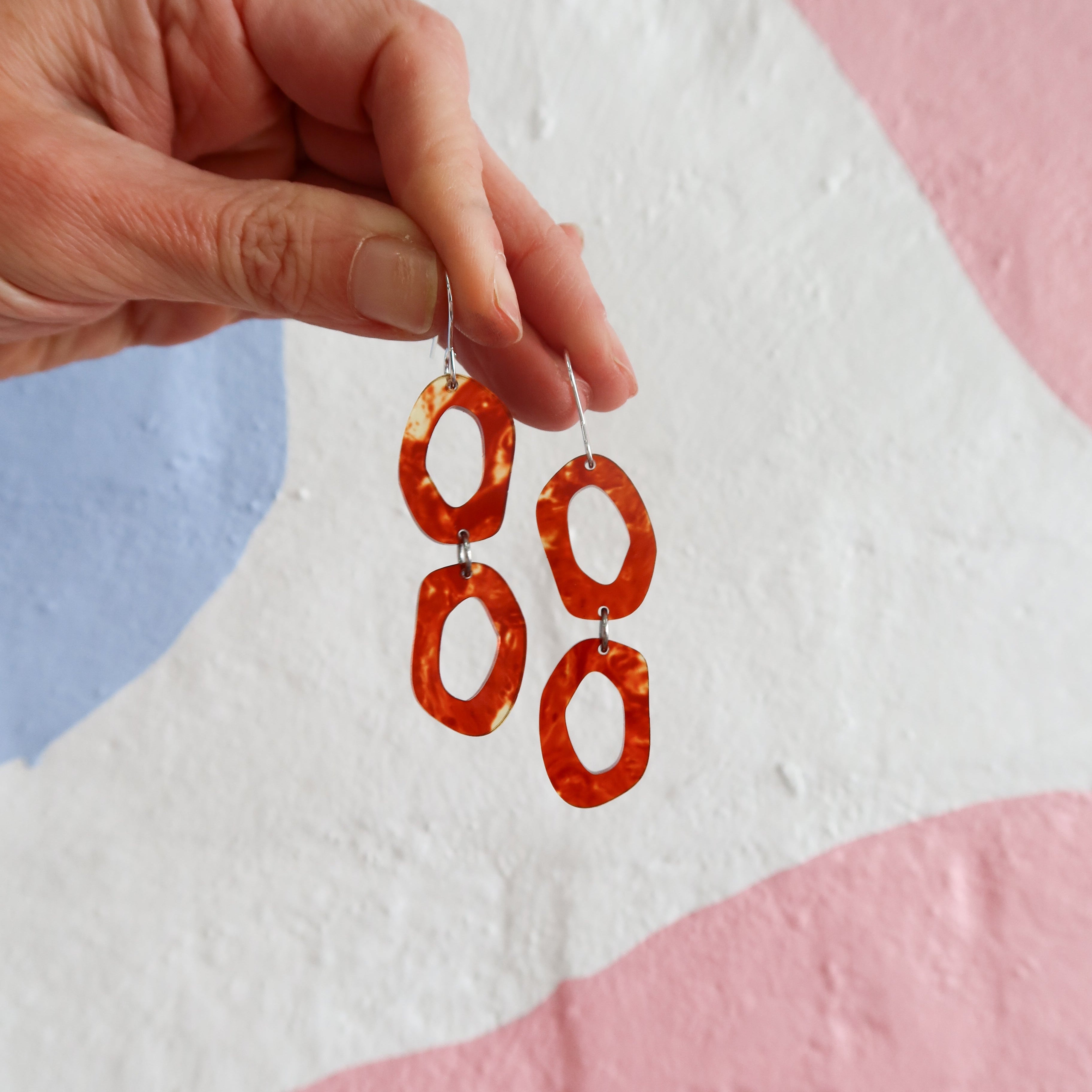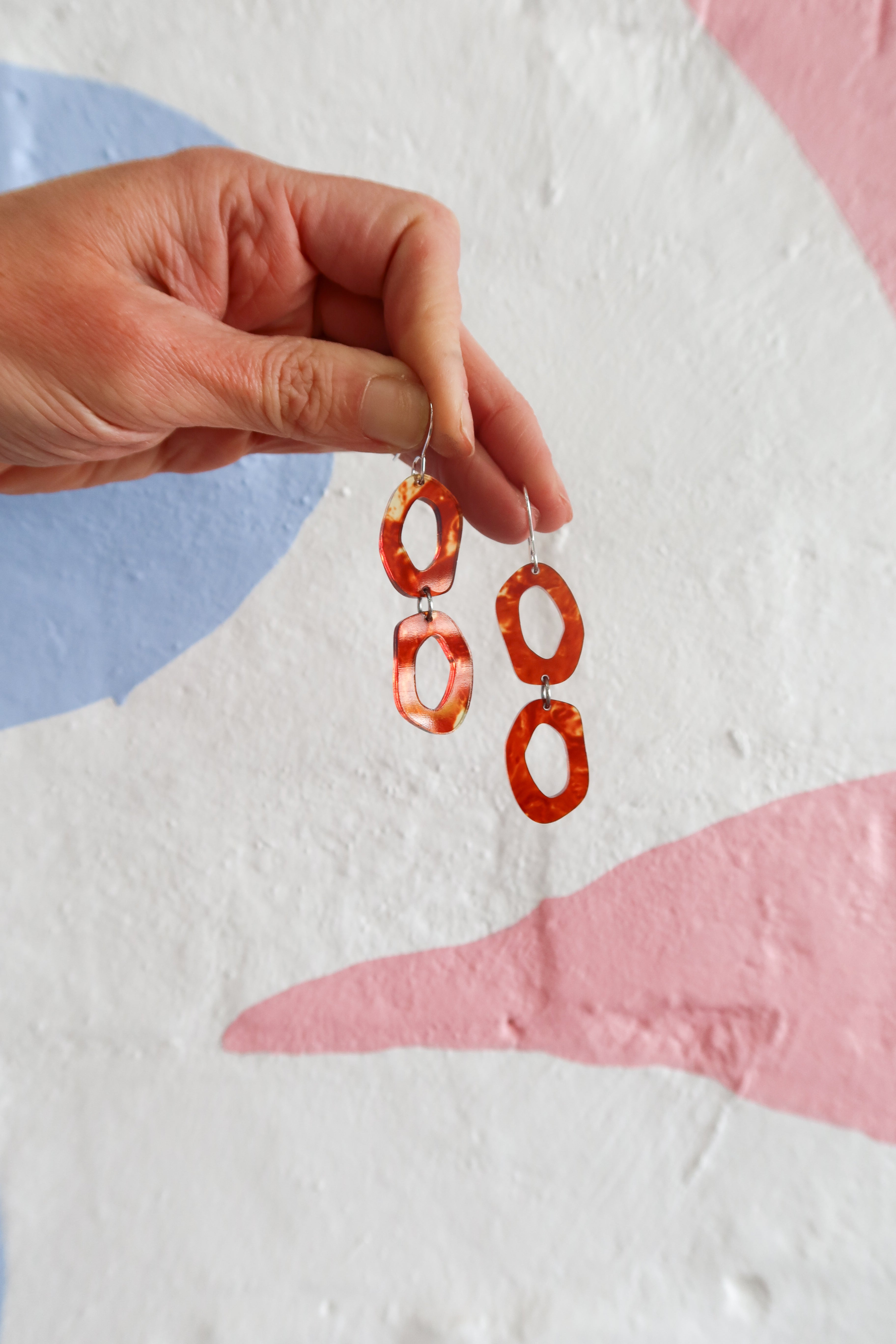 Elevate your style and feel on top of the world with these stunning earrings that are designed to make heads turn.Not only do these statement dangles make a bold fashion statement, but they are also hypoallergenic, making them suitable for even the most sensitive ears. Say goodbye to irritation and hello to endless compliments as you confidently flaunt your unique style.Materials: 3mm Acrylic, Surgical Stainless Steel hooks.