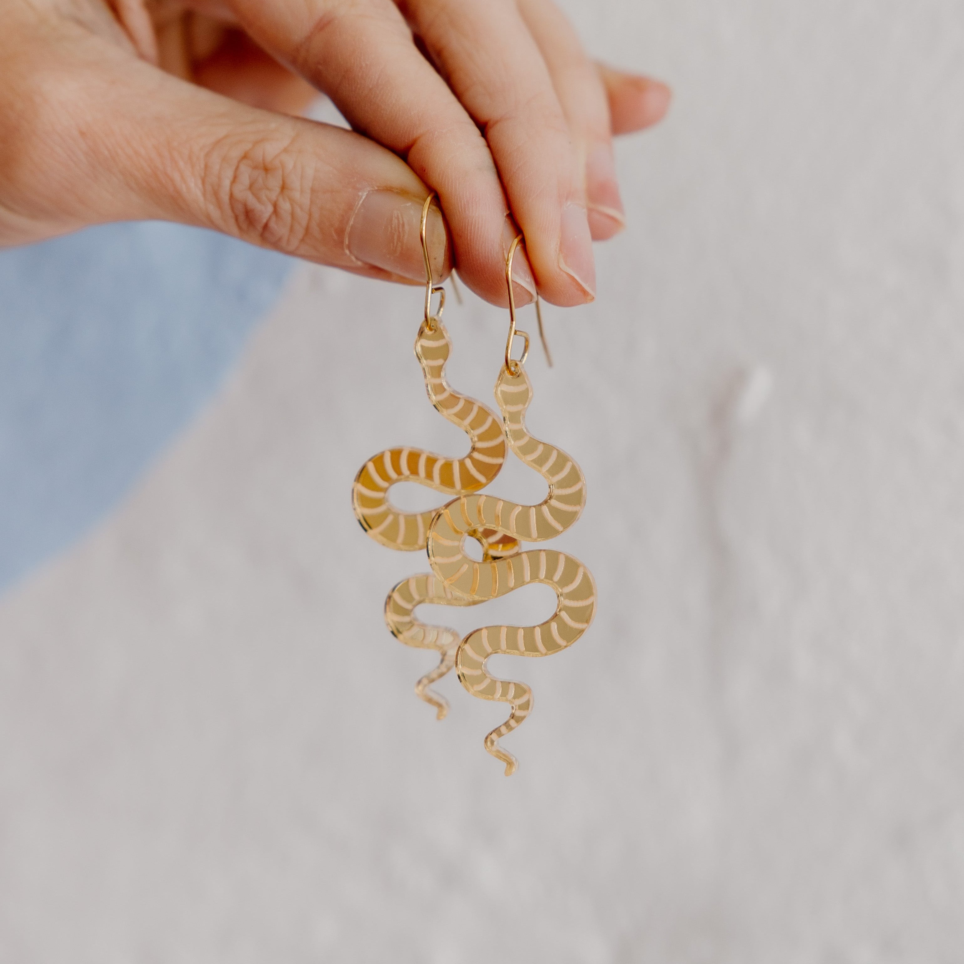 Snake DanglesNot only do these statement dangles make a bold fashion statement, but they are also hypoallergenic, making them suitable for even the most sensitive ears. Say goodbye to irritation and hello to endless compliments as you confidently flaunt your unique style.Materials: 3mm Acrylic, 304 stainless steel (plated with Rhodium)