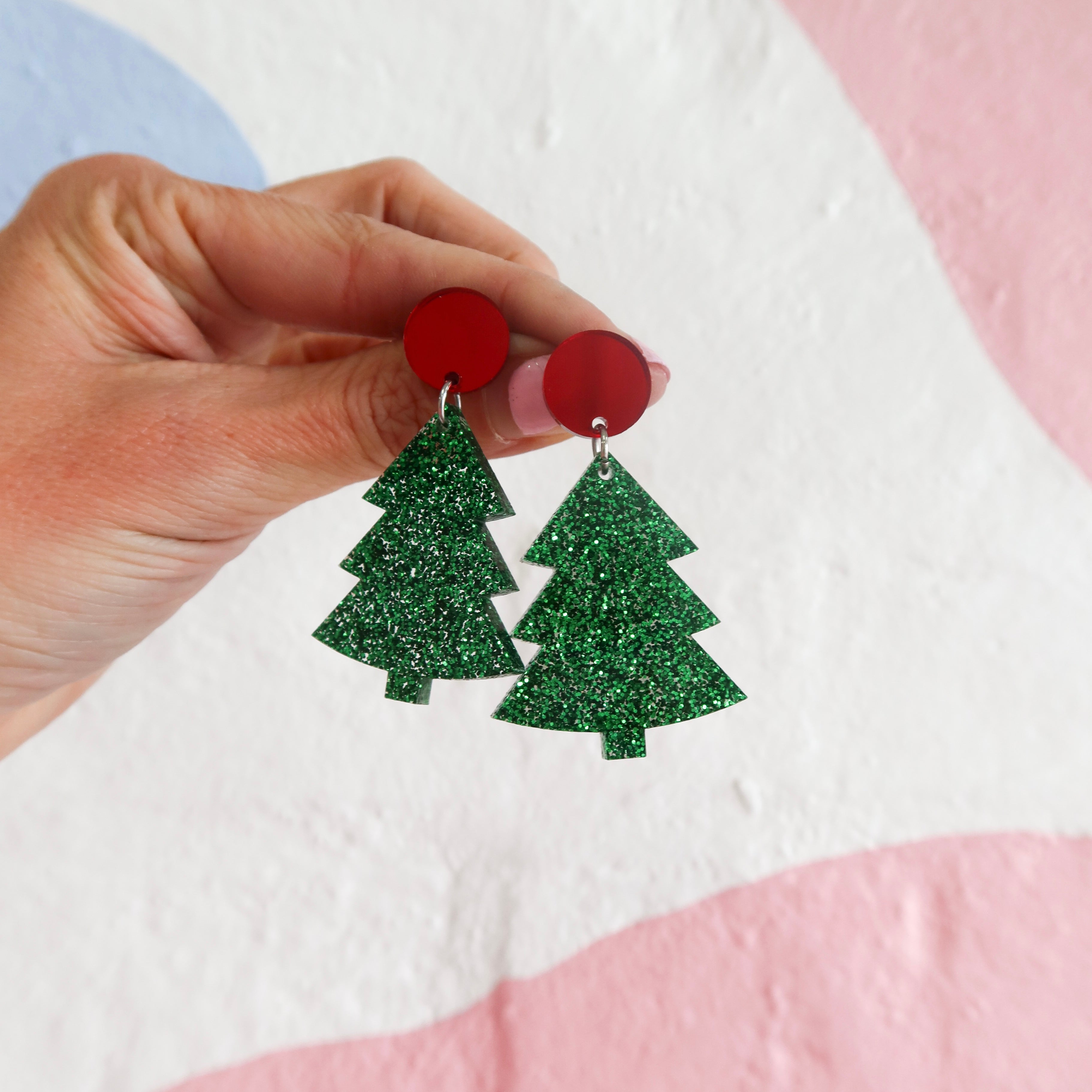 Christmas Tree Red Mirror / Green Glitter