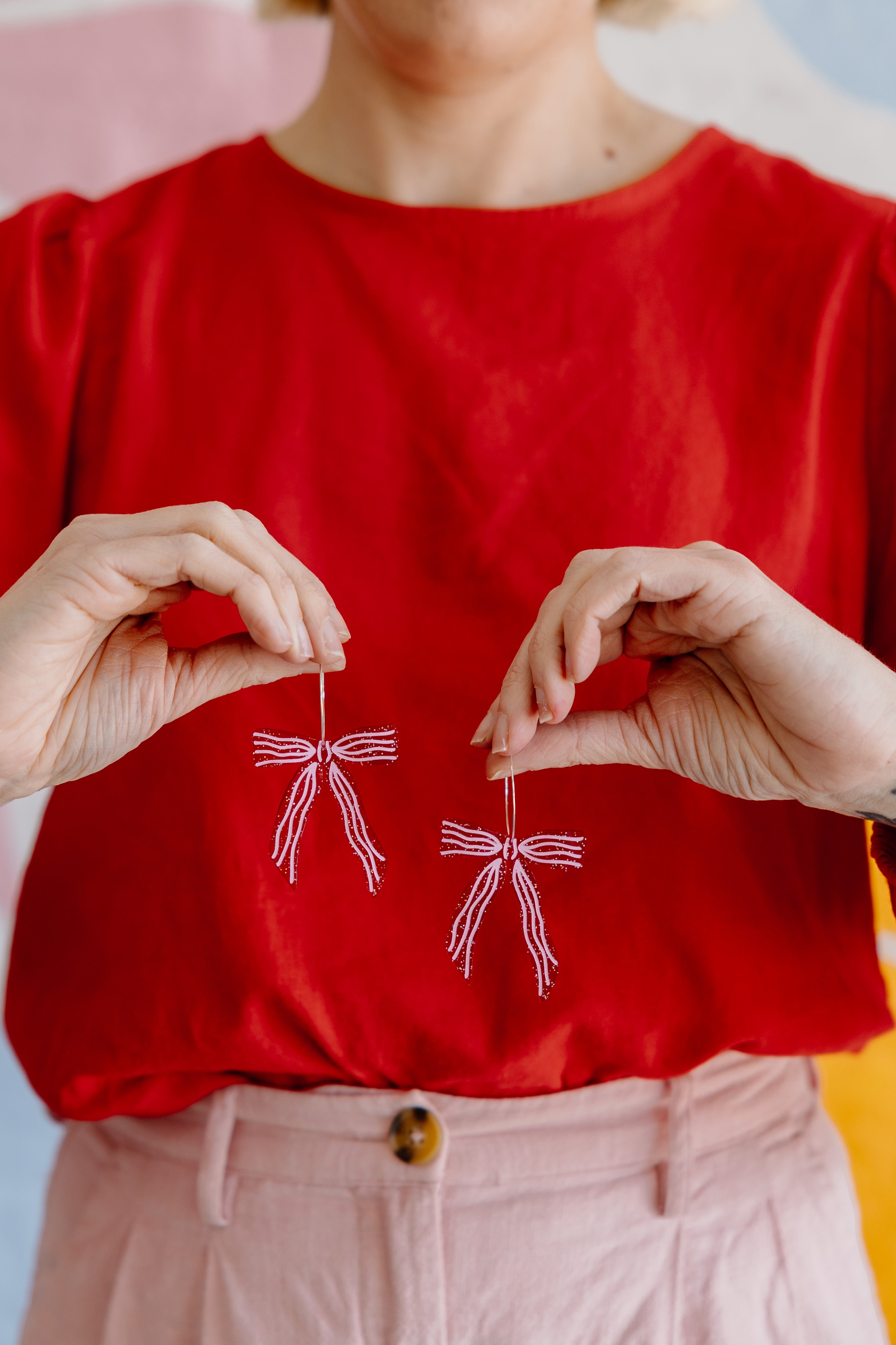 These Red Ribbon Bow Hoops are the perfect blend of festive drama, gorgeous craftsmanship, and that signature Pink Nade magic you love.