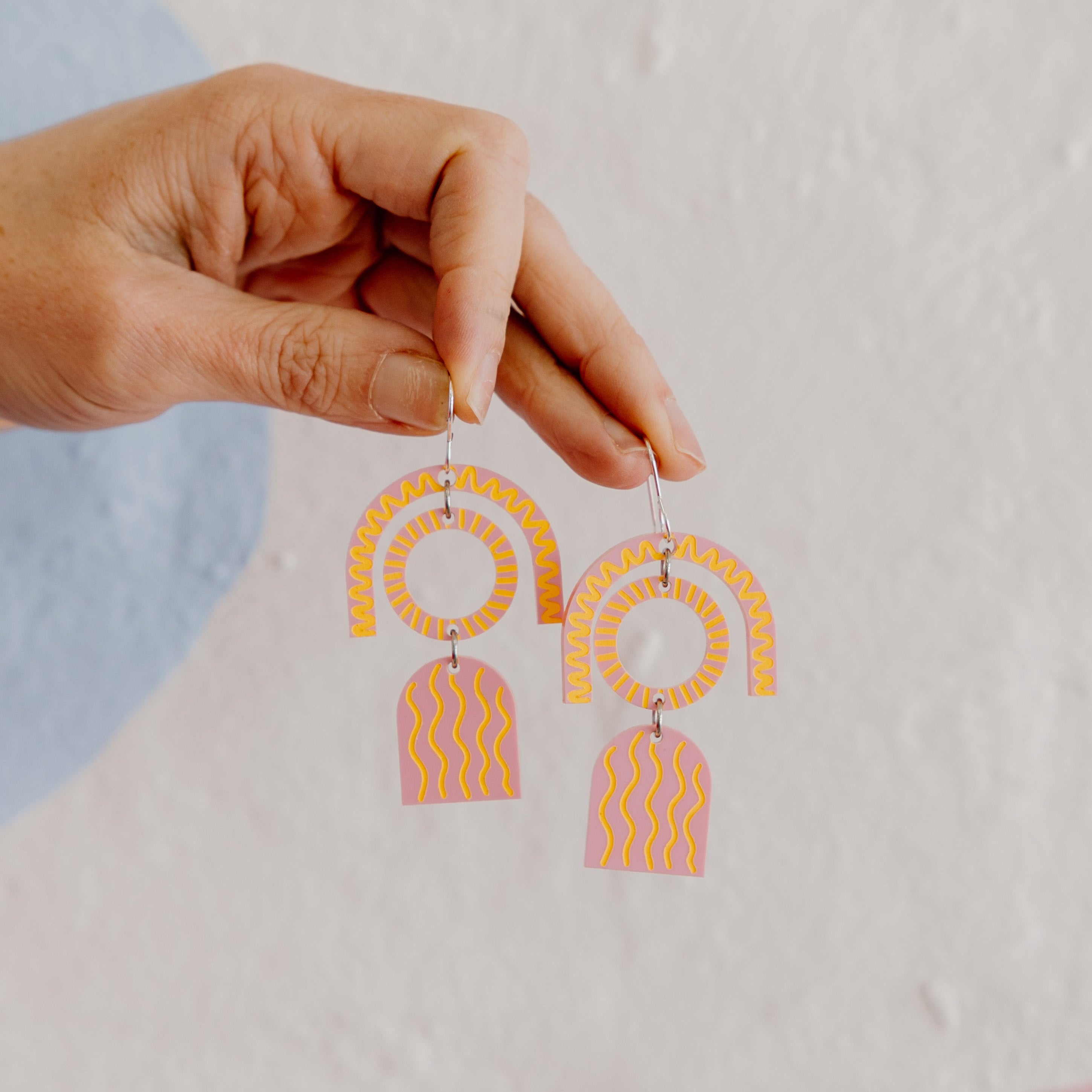 Sunrise Pink / Yellow Dangle Earrings